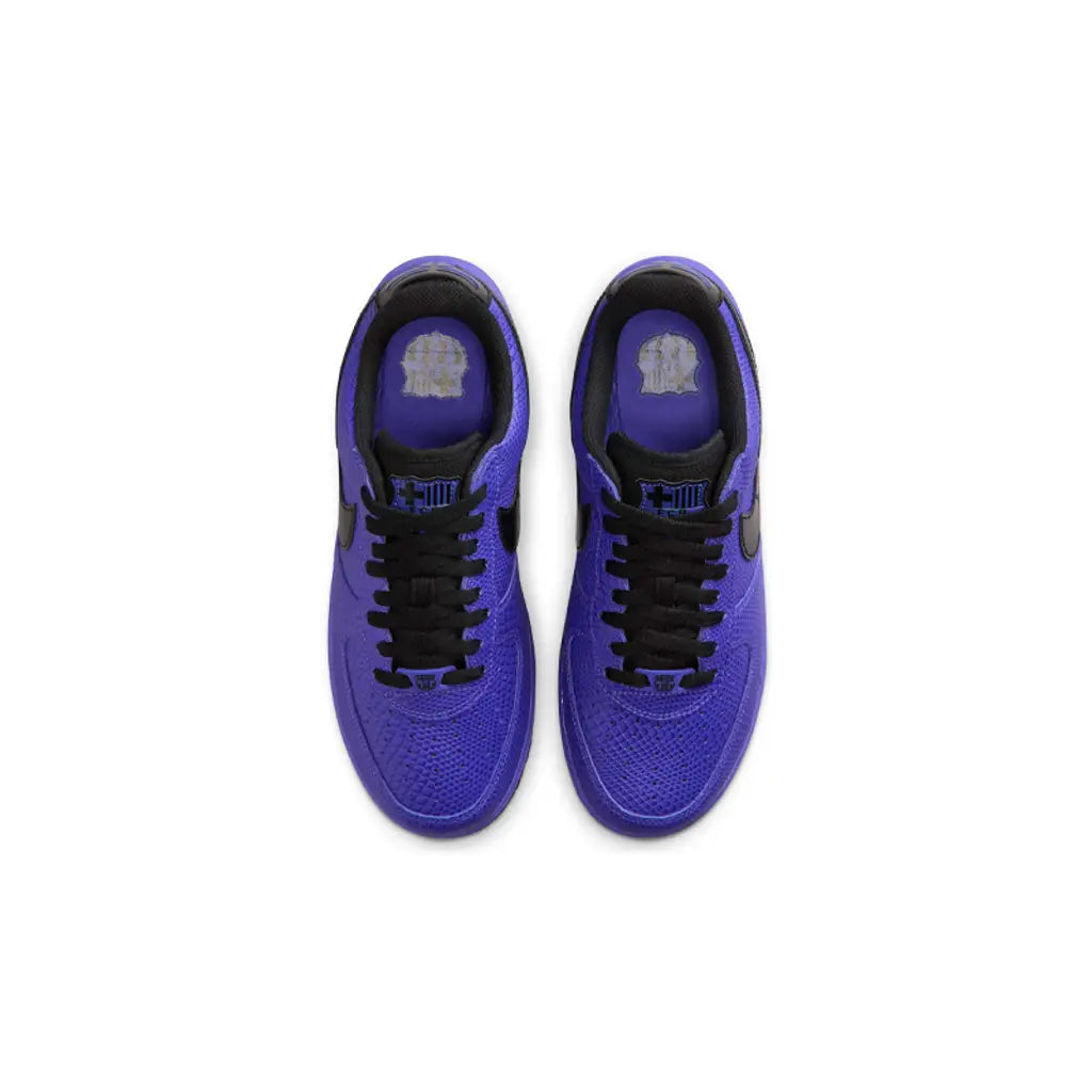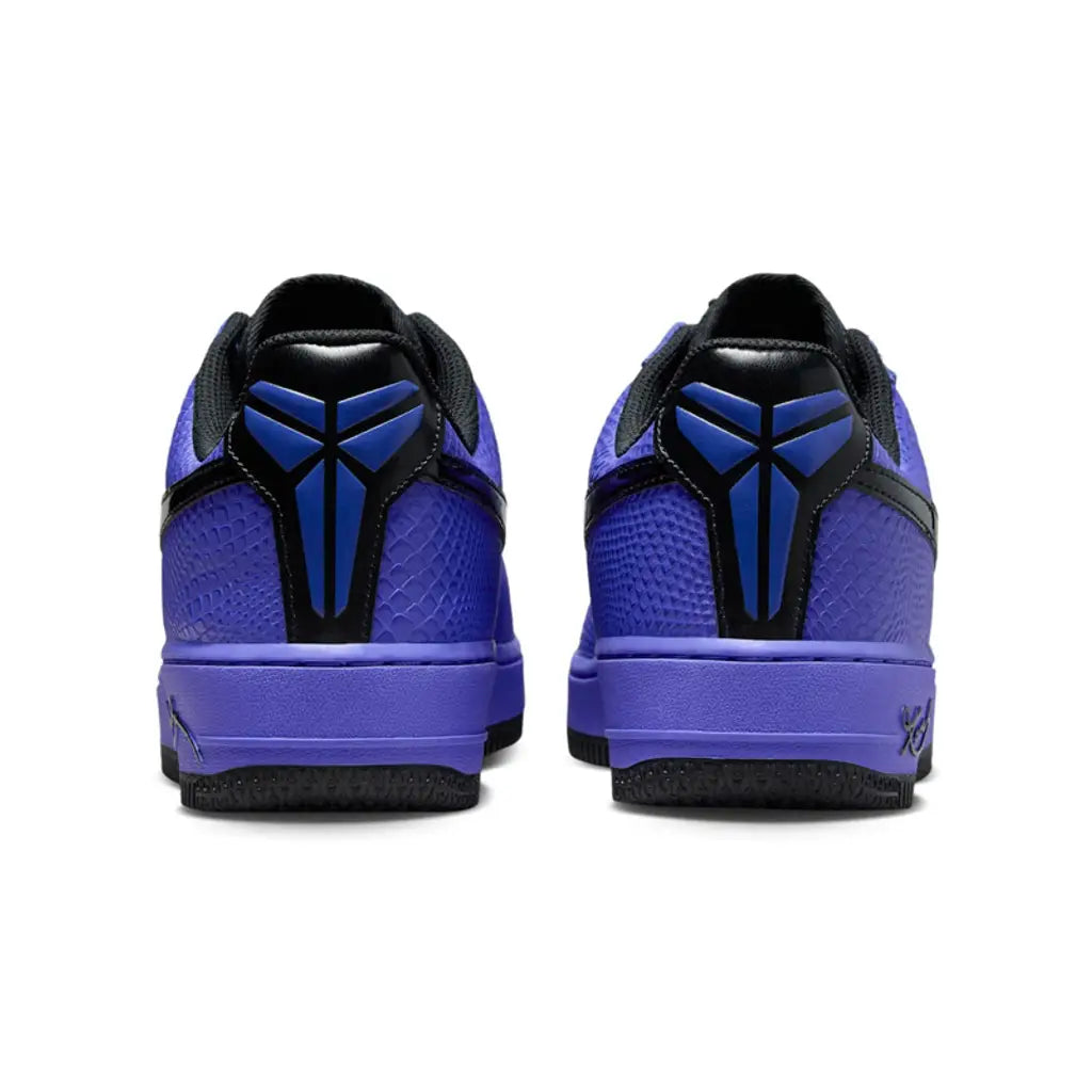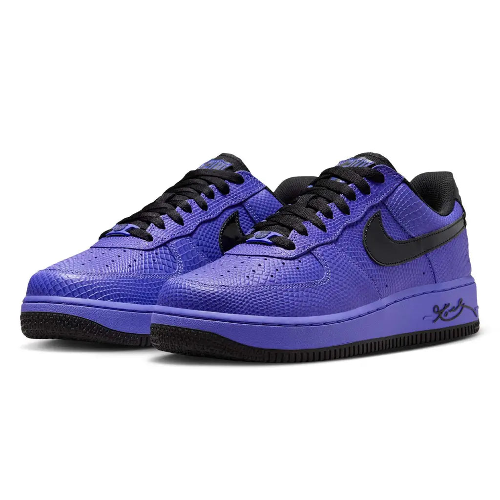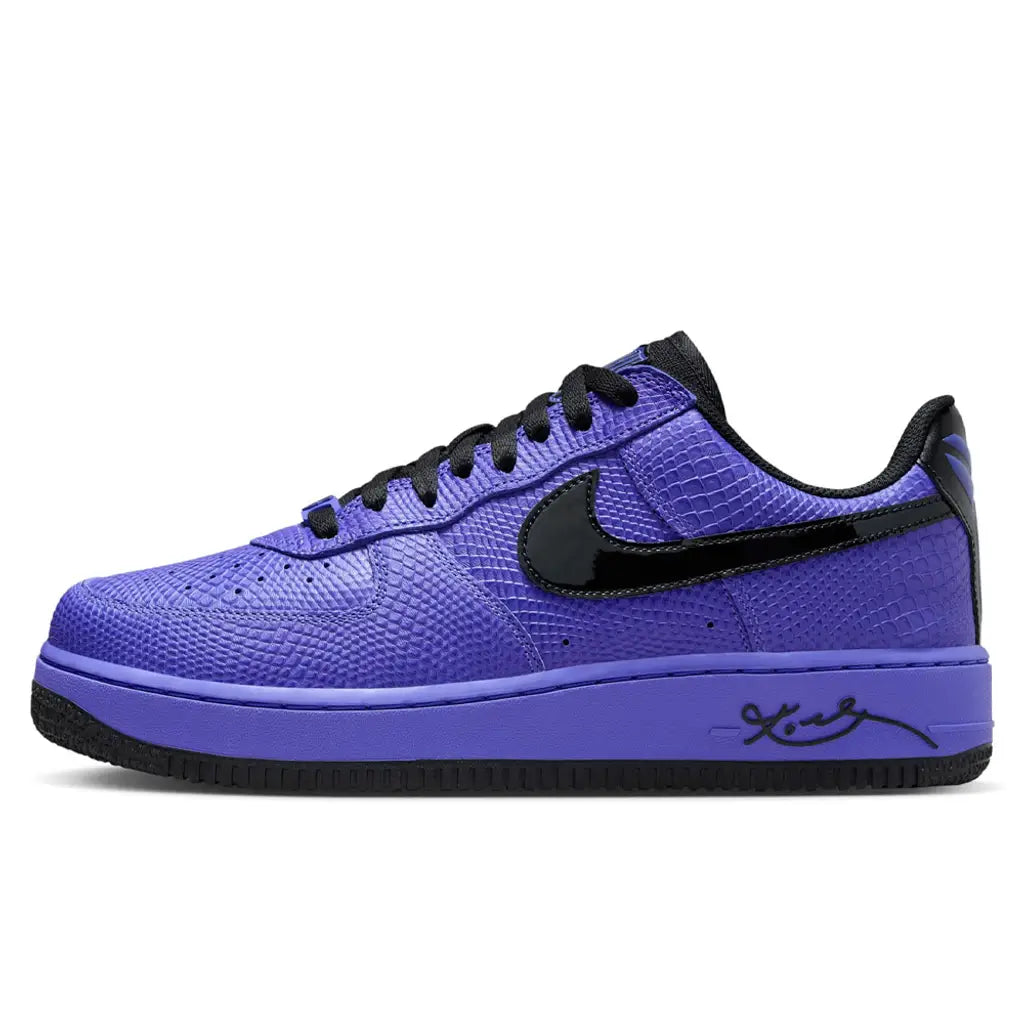 Description: This Mamba-inspired AF1 Low features an elegant purple hue throughout the faux snakeskin upper, nodding to the Lakers’ purple and gold uniforms. A glossy black patent leather Swoosh decorates the sidewalls, complementing the Kobe signature on the midsole. The FC Barcelona crest adorns the tongue, sockliner, and lace dubrae, while the sheath logo reinforces the rear panel. The full-length ReactX foam drop-in midsole and heel Nike Air unit deliver all-day comfort and shock absorption, a significant upgrade to the ‘80s basketball shoe’s old-school tech. The updated outsole channels Mamba Mentality by implementing sheath patterns and scaly textures for impressive traction. This pair arrives in a special-edition package and an exclusive hang tag, wrapping up the premium design.